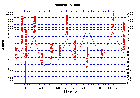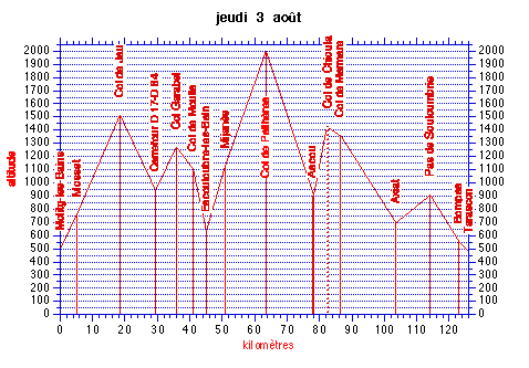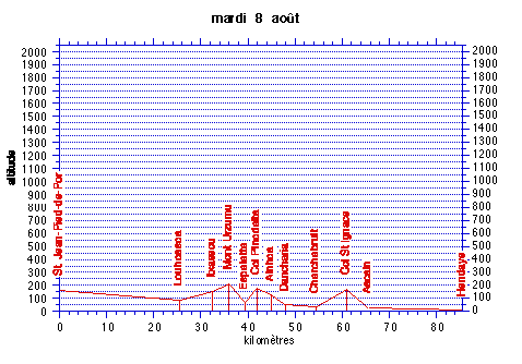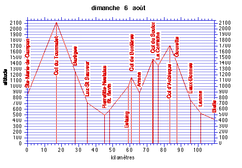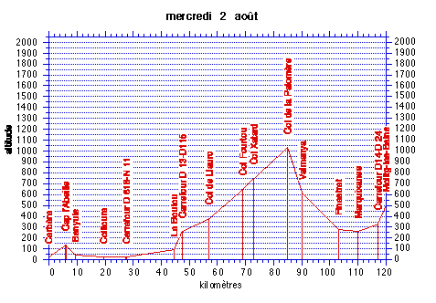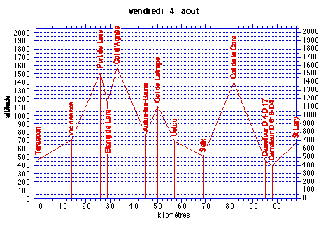 | étapes | parcours | étape | altit. | dén. | dist. |